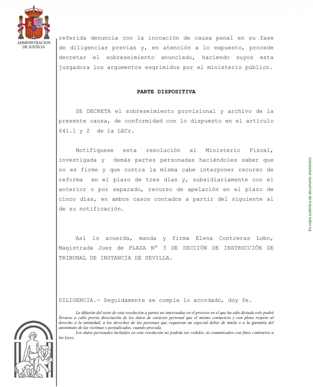 El auto judicial concluye que: